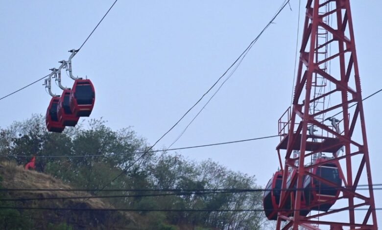 देवास में हादसा: रोप-वे में अटक गई ट्रॉलियां, श्रद्धालुओं की जान आफत में