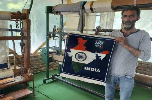 दरअसल, जम्मू-कश्मीर के सुदूर गांव अष्टेंगू के रहने वाले मोहम्मद मकबूल डार ने एक ऐसा कालीन बनाया है, जिस पर तिरंगे में भारत के मानचित्र को प्रदर्शित किया गया है। यह दिखने में बहुत ही खूबसूरत है। साथ ही इस पर ‘मेरा भारत महान’ का स्लोगन भी लिखा गया है। इसे बनाने में काफी वक्त लगा है और इसे देखकर डार का देश के लिए प्यार सहज ही समझ आता है।