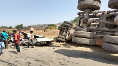 स्कूटी सवार को रौंदकर जीप पर पलटा मालवाहक, सात की मौके पर मौत