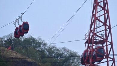 देवास में हादसा: रोप-वे में अटक गई ट्रॉलियां, श्रद्धालुओं की जान आफत में